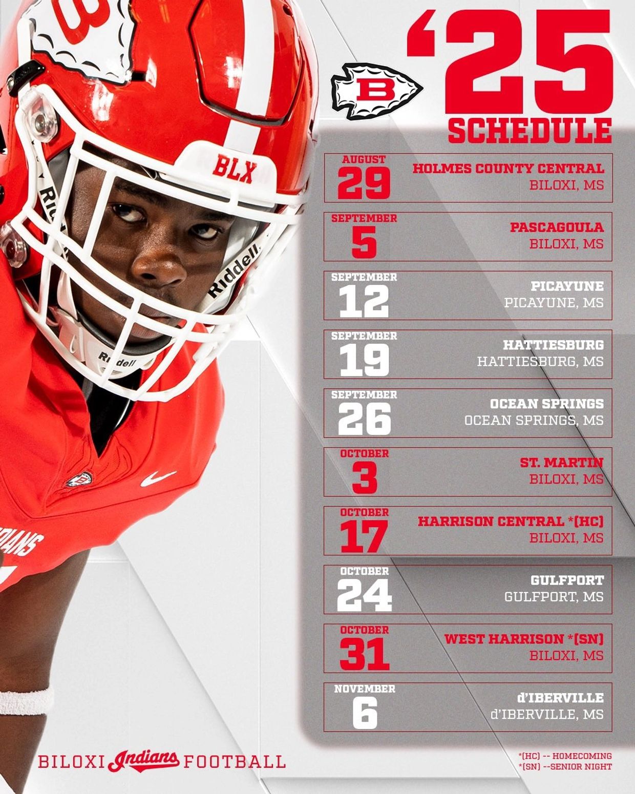 The Biloxi Indians Football schedule